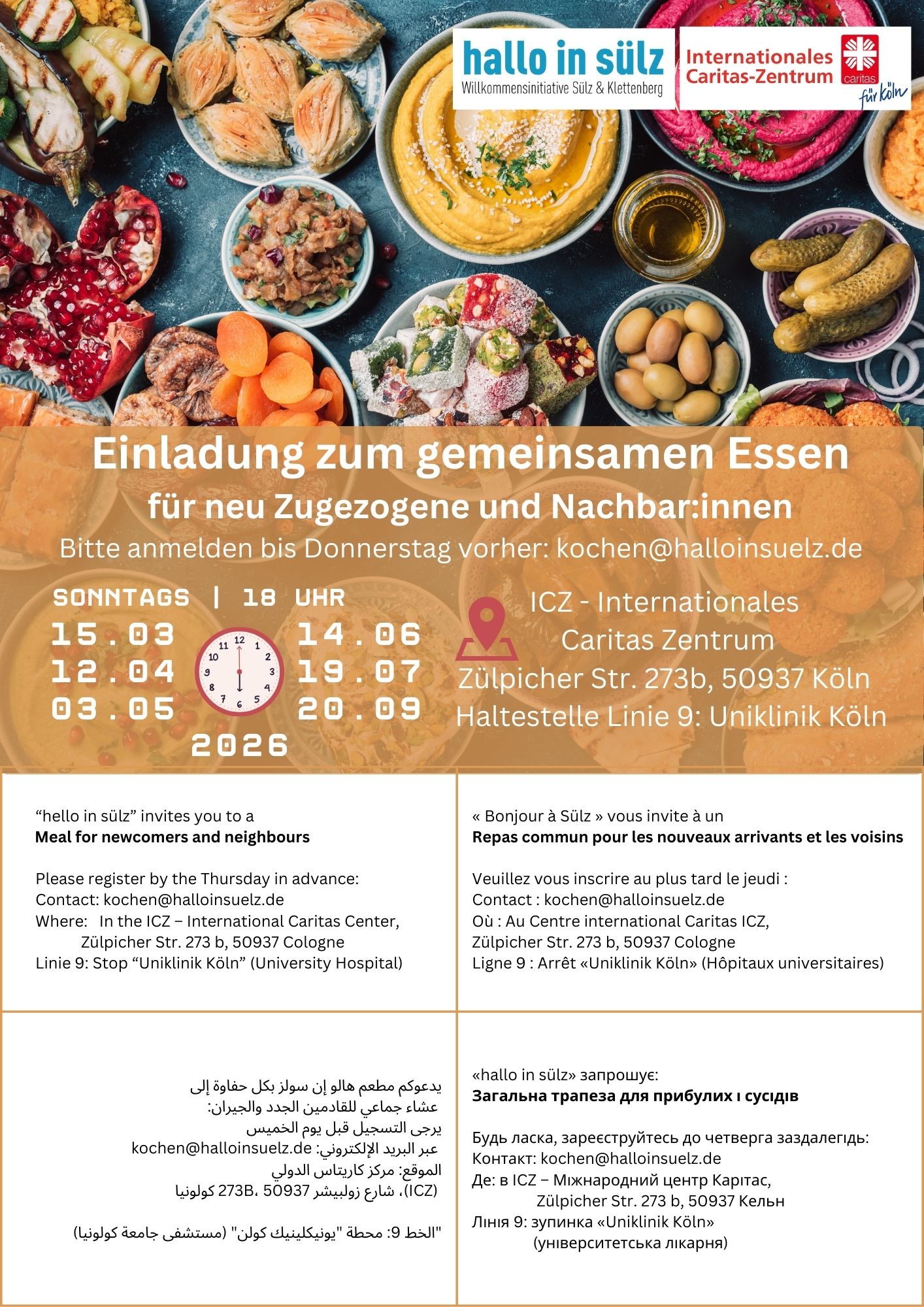Einladung zum „hallo in sülz“-Treff an jedem 3. Dienstag im Monat von 17:05-18:45 Uhr im ICZ: